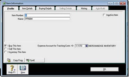 Membuat item baru dengan nama PPNBM, hanya di-linkan di I buy this item karena hanya untuk tujuan pembelian saja. PPNBM hanya dikenakan dari harga beli barang dagangan jadi PPNBM bersifat non taxable, isilah N-T di bagian buying detail. Untuk lebih jelasnya lihat gambar.